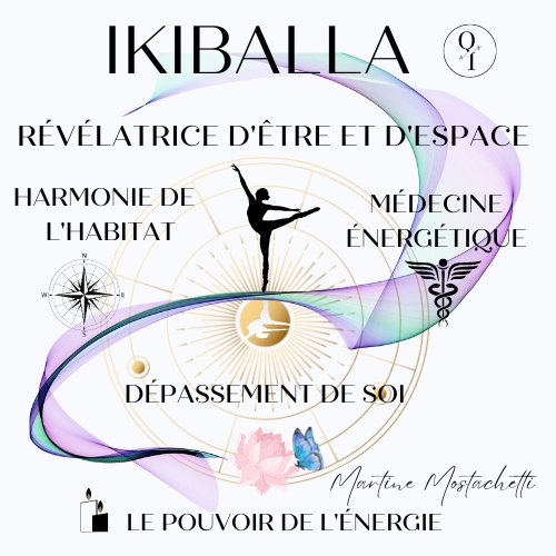 Ikiballa révèle les êtres et les lieux. Martine Mostachetti met à votre disposition son savoir-faire en Médecine Chinoise et en Feng Shui. Elle accompagne votre développement personnel à travers la pratique de plusieurs disciplines dissociables, nécessaires à votre être et bien-être, et toutes reliées les unes aux autres.