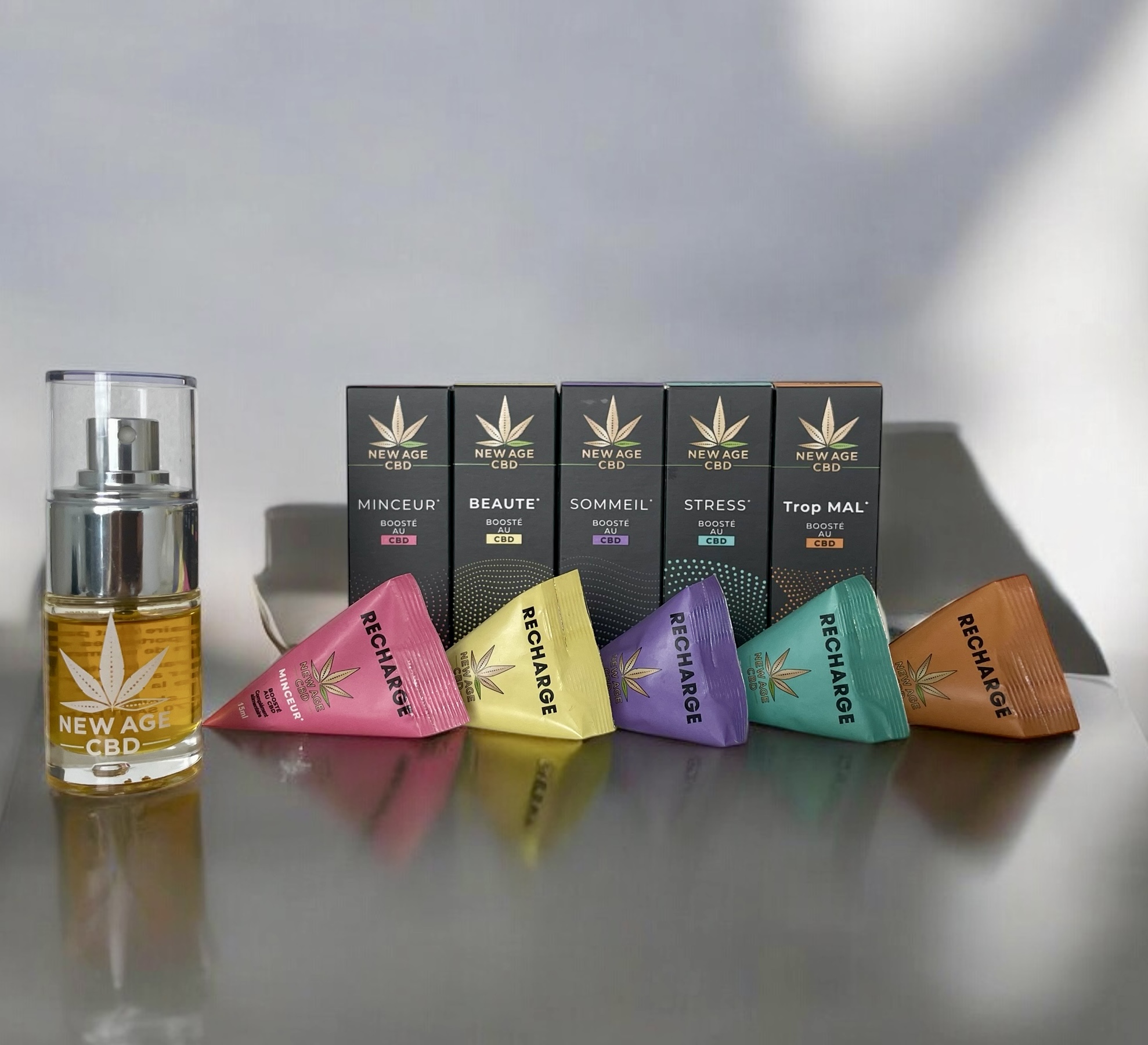 NEW AGE CBD, le laboratoire français qui cultive, extrait et transforme son propre CBD, en conformité avec la réglementation, pour l’inclure dans ses 5 compléments alimentaires de bien-être innovants : stress, sommeil, douleur, minceur, anti-âge.