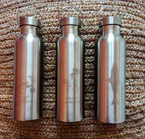 Tchaotchao Plastic propose des bouteilles isothermes 700ml gravées mettant en avant Marseille et sa région.