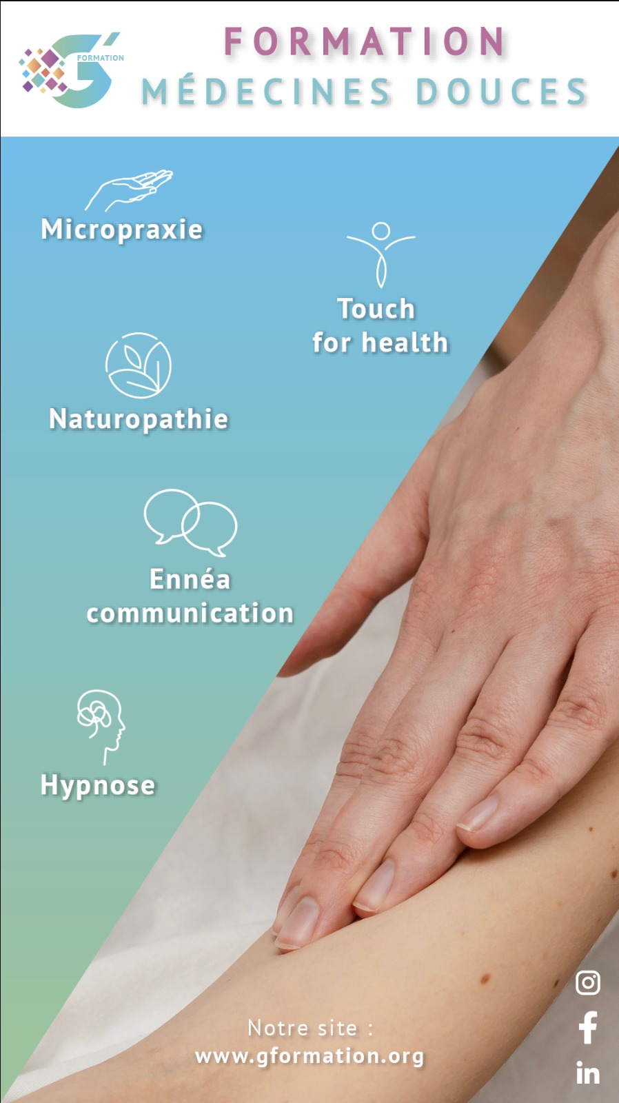 G’Formation est un organisme de formation professionnelle dédié aux métiers des médecines douces et thérapies du bien-être.