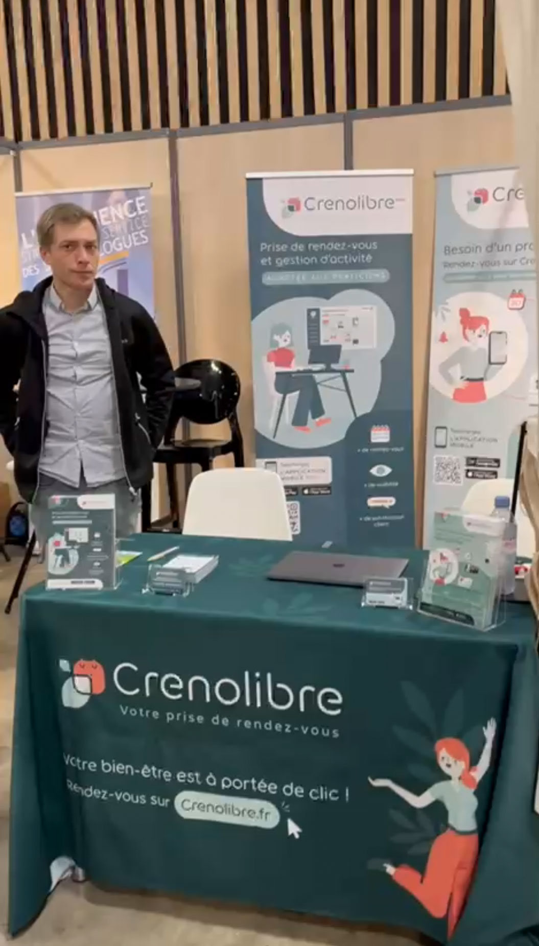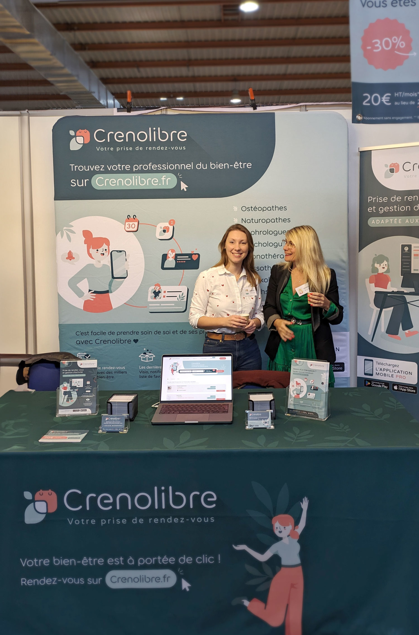 Nous sommes avant tout sur le salon pour faire connaître la marque Crenolibre au grand public et l’application mobile gratuite à télécharger sur Google et Apple Store qui simplifient la prise de rendez-vous avec des praticiens.