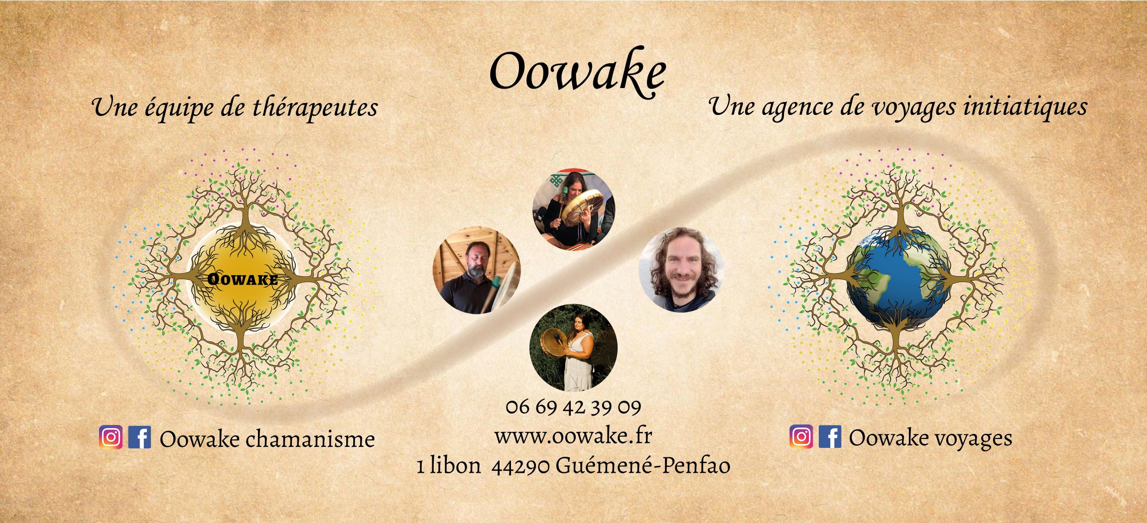 Nous sommes d’abord un couple de thérapeutes. Karine pour la voie chamanique et Sylvain pour la voie druidique. Avec le renfort de Faustine et Nicolas, Oowake c’est la rencontre de 4 chemins, de 4 âmes, de 4 énergies complémentaires. Pour accompagner les gens dans leur éveil. Dans notre Centre de Bien-être des Grands Chênes nous proposons, tout au long de l’année, des soins, des ateliers, des initiations, des transmissions et des stages, en individuel ou en groupe. Nous travaillons aussi avec des thérapeutes et des artisans indépendants. Pour vous offrir de la qualité et de la diversité dans les activités que nous proposons. Depuis juin 2022, grâce à la création de l’agence de voyages « Oowake Voyages ». Nous organisons également des voyages initiatiques en Angleterre, en Irlande, en Italie, en Egypte et pour 2024 au Pérou. Voyager autour du monde et au cœur de Soi, à la rencontre d’autres pays, d’autres cultures, d’autres énergies, mais surtout à la rencontre de Soi.