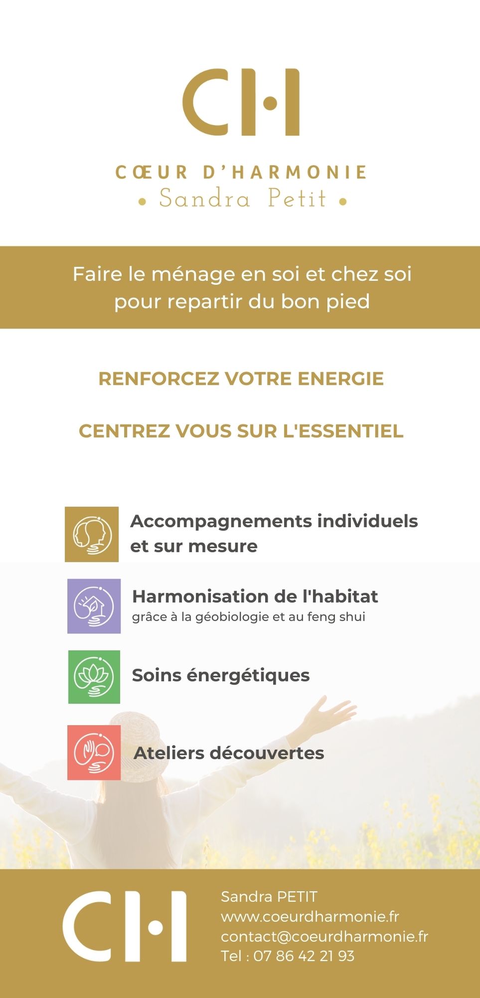 Avec l’offre Cœur d’harmonie, j’aide chacun à se retrouver, gagner en sérénité, en énergie et se sentir aligné avec soi.