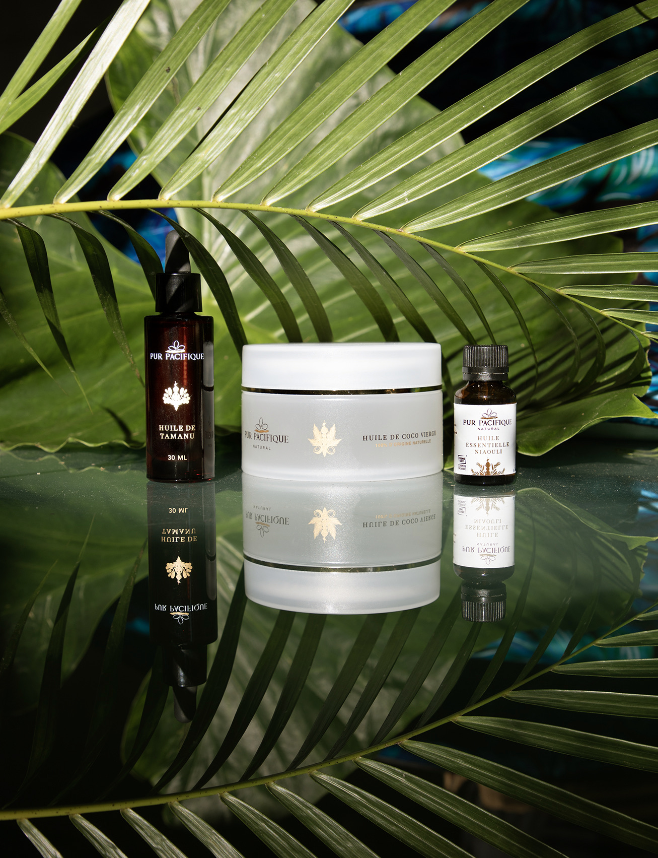 Découvrez les propriétés exceptionnelles dermatologiques et antioxydantes de l’huile végétale de Tamanu surnommé l’Or Vert Pacifique, associée aux vertus séculaires du Coco, du Bois de Santal et du Niaouli de Nouvelle-Calédonie cultivés et cueillis sur un territoire exceptionnellement préservé.